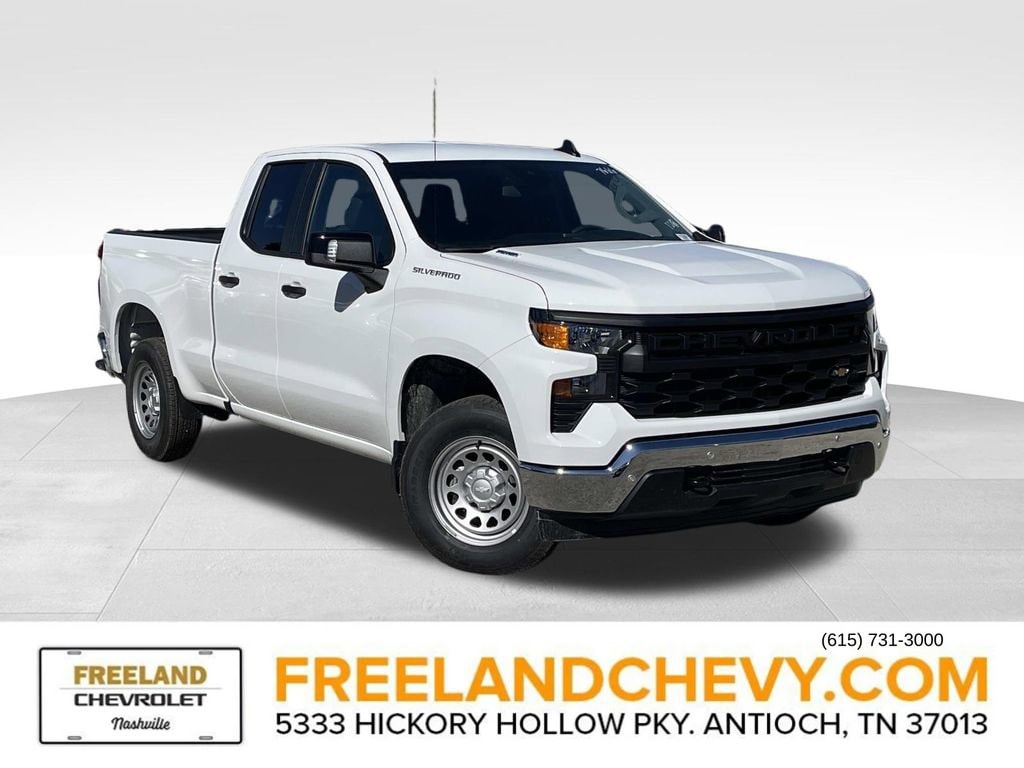 Freeland Chevrolet where Superstore Selection meets Southern Service. Preferred Equipment Group 1WT (3.5 Monochromatic Display Driver Info Center, 4-Way Manual Driver Seat Adjuster, 40/20/40 Front Split-Bench Seat, Black (Semi-Gloss) Front Bumper, Black (Semi-Gloss) Rear Bumper, Black Manual Outside Mirrors, Bluetooth® For Phone, Electronic Cruise Control, Front Frame-Mounted Black Recovery Hooks, HD Rear Vision Camera, Inside Rearview Mirror with Tilt, Locking Tailgate, Manual Tailgate Function with No EZ Lift, Manual Tilt Wheel Steering Column, OnStar Services Capable, Power Front Windows with Driver Express Up/Down, Power Front Windows with Passenger Express Down, Power Rear Windows with Express Down, Rear 60/40 Folding Bench Seat (folds Up), Remote Keyless Entry, Rubberized-Vinyl Floor Covering, SiriusXM Delete, Solar Absorbing Tinted Glass, Standard Tailgate, Teen Driver, Tire Pressure Monitoring System, Vinyl Seat Trim, Wheels: 17 x 8 Ultra Silver Painted Steel, and Wi-Fi Hot Spot Capable), Standard Suspension Package, Trailering Package (Hitch Guidance), WT Convenience Package (Deep-Tinted Glass, Electric Rear-Window Defogger, and Heated Power-Adjustable Outside Mirrors), WT Safety Package (Front Chrome Bumper, High Gloss Black Mirror Caps, Lane Change Alert with Side Blind Zone Alert, Perimeter Lighting, Rear Chrome Bumper, Rear Cross Traffic Braking, Rear Pedestrian Alert, and Ultrasonic Front and Rear Park Assist), WT Value Package, 8-Speed Automatic, Jet Black Vinyl, 120-Volt Bed Mounted Power Outlet, 120-Volt Interior Power Outlet, 220 Amp Alternator, 3.42 Rear Axle Ratio, 4-Wheel Disc Brakes, 6 Speakers, 6-Speaker Audio System, ABS brakes, Air Conditioning, Apple CarPlay/Android Auto, Auto High-beam Headlights, Auto-Locking Rear Differential, Automatic Emergency Braking, Brake assist, Compass, Delay-off headlights, Driver door bin, Dual front impact airbags, Dual front side impact airbags, Dual Rear USB Ports (charge Only), Electronic Stability Control, Emergency communication system: OnStar, EZ Lift Power Lock and Release Tailgate, Following Distance Indicator, Forward Collision Alert, Front anti-roll bar, Front Center Armrest w/Storage, Front Pedestrian Braking, Front reading lights, Front wheel independent suspension, Fully automatic headlights, Illuminated entry, IntelliBeam Automatic High Beam on/Off, Lane Keep Assist with Lane Departure Warning, Low tire pressure warning, Occupant sensing airbag, Outside temperature display, Overhead airbag, Overhead console, Panic alarm, Passenger door bin, Passenger vanity mirror, Power steering, Power windows, Premium audio system: Chevrolet Infotainment 3, Radio data system, Radio: Chevrolet Infotainment 3 System, Rear reading lights, Rear step bumper, Remote keyless entry, Speed control, Speed-sensing steering, Split folding rear seat, Tachometer, Tilt steering wheel, Traction control, Trip computer, Variably intermittent wipers, and Voltmeter.
