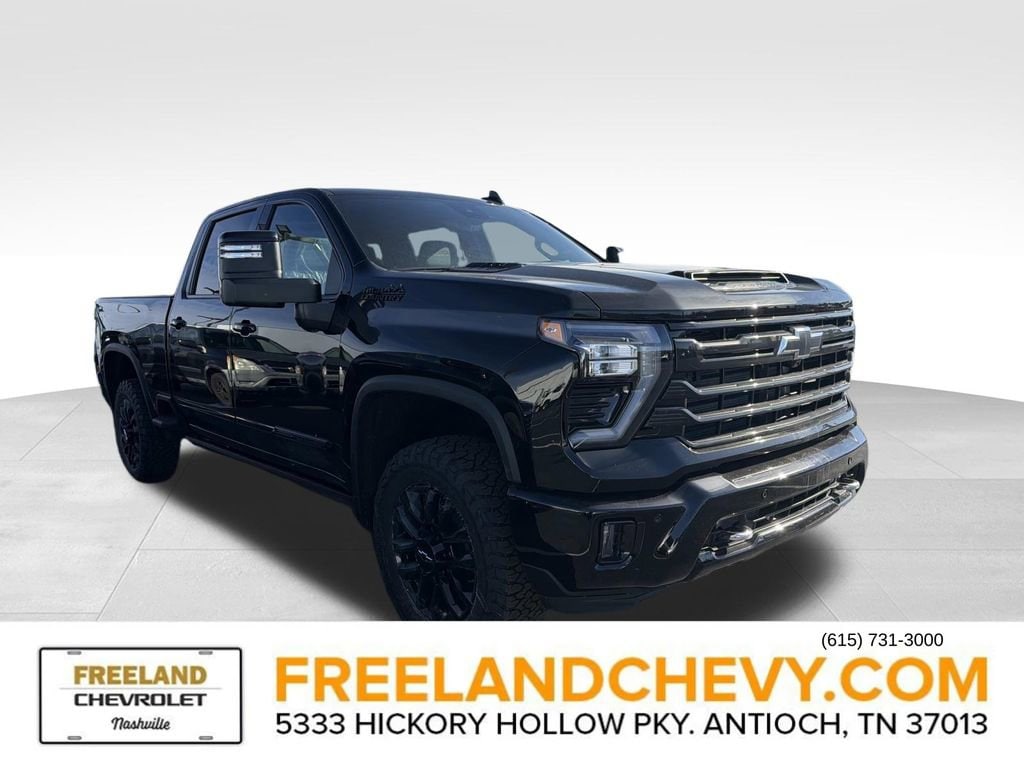 Freeland Chevrolet where Superstore Selection meets Southern Service. Gooseneck/5th Wheel Prep Package (Black Chevytec Spray-on Bedliner), High Country Premium Package (Power Sunroof), Midnight Edition (Black Grille Bar with Chevy Black Bow Tie, Body-Color Mirror Caps, High Gloss Black Door Handles, Power-Retractable Black Assist Steps, and Wheels: 20 High Gloss Black Painted), Preferred Equipment Group 3LZ (120-Volt Bed Mounted Power Outlet, 120-Volt Interior Power Outlet, 170 Amp Alternator, 3.73 Rear Axle Ratio, 6 Rectangular Chromed Tubular Assist Steps, Auto-Dimming Inside Rear-View Mirror, Bed View Camera with Two Trailer Camera Provisions, Bluetooth® For Phone, Chevrolet Connected Access Capable, Chrome Door Handles, Chrome Mirror Caps, Color-Keyed Carpeting Floor Covering, Compass, Deep-Tinted Glass, Durabed Pickup Bed, Electric Rear-Window Defogger, Front Bucket Seats, Front Carpeted Floor Mats, Front Chrome Recovery Hooks, Front LED Fog Lamps, Front Rain-Sensing Wipers, Heated 2nd Row Outboard Seats, Heated Steering Wheel, Hitch Guidance with Hitch View, in-Vehicle Trailering App System, Keyless Open and Start, LED Cargo Area Lighting, Manual Tilt and Telescoping Steering Column, OnStar Services Capable, Perforated Leather Seat Trim, Polished Exhaust Tip, Power Door Locks, Power Front Windows with Driver Express Up/Down, Power Front Windows with Passenger Express Up/Down, Power Rear Windows with Express Down, Power Sliding Rear Window with Defogger, Power Up/Down Tailgate Function with Power Lock and Release, Push Button Start, Rear Carpeted Floor Mats, Rear Cross Traffic Alert, Rear Wheelhouse Liners, Remote Vehicle Starter System, SiriusXM with 360L Trial Subscription, Standard Tailgate, Steering Wheel Audio Controls, Trailer Camera Provisions, Ultrasonic Front and Rear Park Assist, Unauthorized Entry Theft-Deterrent System, Universal Home Remote, Wheels: 20 8-Spoke Bright Finish Aluminum, Wi-Fi Hotspot Capable, Wireless Charging, Wireless Phone Projection, and Wrapped Steering Wheel), Suspension Package, Technology Package (15 Diagonal Multicolor Head-Up Display and Rear Camera Mirror), Up-Level Rear Seat with Storage Package, Z71 Off-Road Package (Hill Descent Control and Off-Road Suspension), 10-Speed Automatic, 4WD, Jet Black Leather, 10-Way Power Driver Seat Adjuster with Lumbar, 10-Way Power Passenger Seat Adjuster with Lumbar, 4-Wheel Disc Brakes, 7 Speakers, 720 Cold-Cranking Amps Heavy-Duty Battery, ABS brakes, Air Conditioning, Alloy wheels, AM/FM radio: SiriusXM with 360L, Apple CarPlay/Android Auto, Auto High-beam Headlights, Auto-dimming door mirrors, Auto-dimming Rear-View mirror, Automatic temperature control, Black Molded Splash Guards, Bodyside moldings, BOSE Premium 7-Speaker Sound System, Brake assist, Bumpers: body-color, Console-Mounted Safe, Delay-off headlights, Driver door bin, Driver Memory, Driver vanity mirror, Dual front impact airbags, Dual front side impact airbags, Electronic Stability Control, Emergency communication system: OnStar, EZ Lift Power Lock and Release Tailgate, Floor-Mounted Center Console, Front anti-roll bar, Front Center Armrest, Front dual zone A/C, Front fog lights, Front reading lights, Front wheel independent suspension, Fully automatic headlights, Garage door transmitter, Genuine wood console insert, Genuine wood dashboard insert, Genuine wood door panel insert, Hard Folding Truck Bed Cover, Heated door mirrors, Heated Driver and Front Outboard Passenger Seating, Heated front seats, Heated rear seats, Heated steering wheel, Illuminated entry, Low tire pressure warning, Memory seat, Multi-Flex Tailgate, Multi-Flex Tailgate Audio System by Kicker, Occupant sensing airbag, Outside temperature display, Overhead airbag, Overhead console, Panic alarm, Passenger door bin, Passenger vanity mirror, Power door mirrors, Power driver seat, Power passenger seat, Power steering, Power windows, Premium audio system: Chevrolet Inf