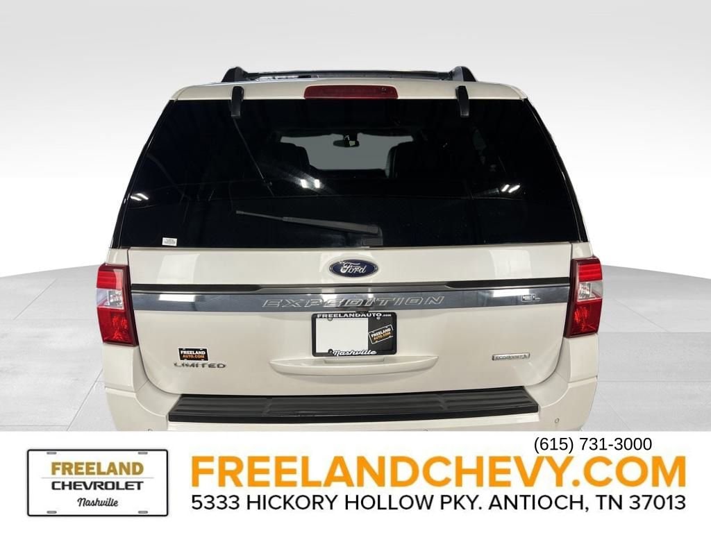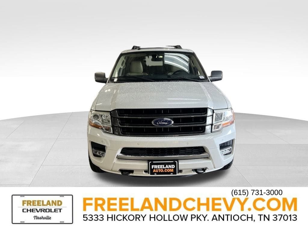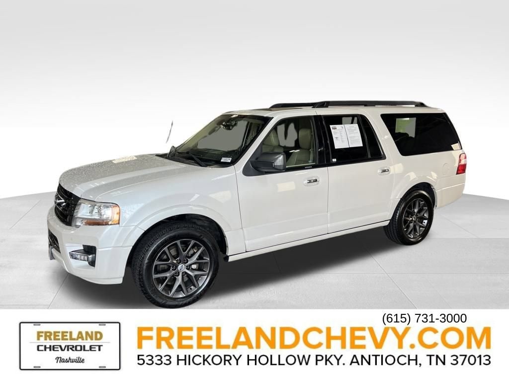 Freeland Chevrolet where Superstore Selection meets Southern Service. Equipment Group 301A (Power Moonroof, Power-Deployable Running Boards, and Voice-Activated Touch-Screen Navigation System), GVWR: 7,760 lbs Payload Package, Limited Appearance Package (Black Roof Rack, Magnetic Grille, Magnetic Mirror Cap, and Wheels: 20 Magnetic Painted), Expedition EL Limited, 4D Sport Utility, 4WD, White Platinum Clearcoat Metallic, Dune Leather, 12 Speakers, 20 Polished Aluminum Wheels, 2nd Row Bucket Seats, 3rd row seats: split-bench, 4-Wheel Disc Brakes, ABS brakes, Adjustable pedals, Air Conditioning, All-Weather Floor Mats (RPO), Alloy wheels, AM/FM radio: SiriusXM, Auto-dimming door mirrors, Auto-dimming Rear-View mirror, Automatic temperature control, BLIS Blind Spot Information System, Brake assist, Bumpers: body-color, CD player, Compass, Delay-off headlights, Driver door bin, Driver vanity mirror, Dual front impact airbags, Dual front side impact airbags, Electronic Stability Control, Emergency communication system: 911 Assist, Exterior Parking Camera Rear, Four wheel independent suspension, Front anti-roll bar, Front Bucket Seats, Front Center Armrest, Front dual zone A/C, Front fog lights, Front reading lights, Fully automatic headlights, Garage door transmitter, Heated & Cooled Perforated Leather Fr Bucket Seats, Heated door mirrors, Heated front seats, Heated rear seats, Illuminated entry, Leather Shift Knob, Leather steering wheel, License Plate Bracket, Limited Slip w/3.73 Axle Ratio, Low tire pressure warning, Memory seat, Occupant sensing airbag, Outside temperature display, Overhead airbag, Overhead console, Panic alarm, Passenger door bin, Passenger vanity mirror, Pedal memory, Power door mirrors, Power driver seat, Power Liftgate, Power passenger seat, Power steering, Power windows, Radio data system, Radio: Premium Sony Sound System w/Single-Disc/MP3, Rain sensing wipers, Rear air conditioning, Rear anti-roll bar, Rear audio controls, Rear Load-Leveling Suspension, Rear reading lights, Rear window defroster, Rear window wiper, Remote keyless entry, Roof rack, Security system, SiriusXM Satellite Radio, Speed control, Speed-sensing steering, Speed-Sensitive Wipers, Split folding rear seat, Steering wheel mounted audio controls, SYNC 3 Communications & Entertainment System, Tachometer, Telescoping steering wheel, Tilt steering wheel, Traction control, Trip computer, Turn signal indicator mirrors, Variably intermittent wipers, Ventilated front seats, and Voltmeter.
