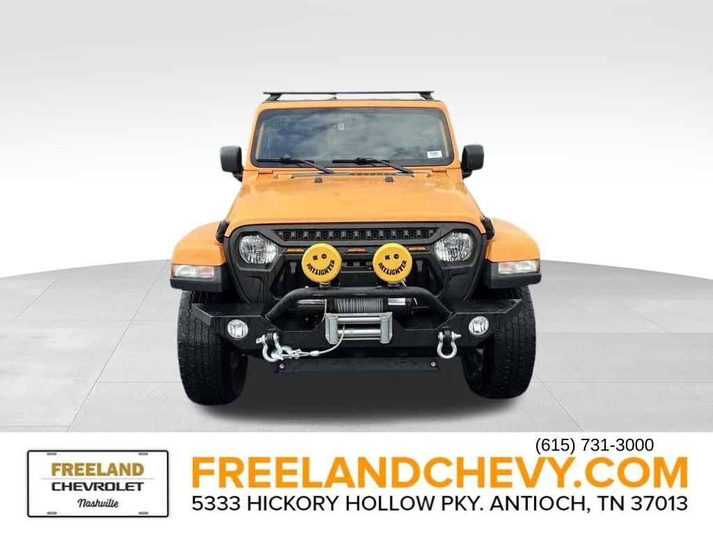 Freeland Chevrolet where Superstore Selection meets Southern Service. 8.4 Radio & Premium Audio Group (1-Year SiriusXM Guardian Trial, 4G LTE Wi-Fi Hot Spot, 5-Year SiriusXM Traffic Service, 5-Year SiriusXM Travel Link Service, 8.4 Touchscreen Display, Alpine Premium Audio System, Auto-Dimming Rear-View Mirror, Emergency/Assistance Call, For Details, Visit DriveUconnect.com, GPS Navigation, HD Radio, Radio: Uconnect 4C Nav w/8.4 Display, SiriusXM Traffic Plus, and SiriusXM Travel Link), Cold Weather Group (Heated Front Seats and Heated Steering Wheel), Quick Order Package 23G, Safety Group (Blind Spot & Cross Path Detection and ParkSense Rear Park Assist System), 4D Sport Utility, 3.6L V6 24V VVT, 4WD, Nacho Clearcoat, Black Leather, 3.45 Rear Axle Ratio, 4-Wheel Disc Brakes, 8 Speakers, ABS brakes, Air Conditioning, Alloy wheels, AM/FM radio: SiriusXM, Apple CarPlay, Apple CarPlay/Android Auto, Automatic temperature control, Aux Battery, Black 3-Piece Hard Top, Brake assist, Cloth Low-Back Bucket Seats, Compass, Delay-off headlights, Driver door bin, Driver vanity mirror, Dual front impact airbags, Dual front side impact airbags, Electronic Stability Control, Freedom Panel Storage Bag, Front anti-roll bar, Front Bucket Seats, Front Center Armrest w/Storage, Front dual zone A/C, Front fog lights, Front reading lights, Fully automatic headlights, Garage door transmitter, Google Android Auto, GPS Antenna Input, Heated door mirrors, Heavy Duty Suspension w/Gas Shocks, Illuminated entry, Integrated roll-over protection, Integrated Voice Command w/Bluetooth, Leather steering wheel, Low tire pressure warning, MOPAR All-Weather Floor Mats (DISC), Mopar Black Tubular Side Steps, No Soft Top, Non-Lock Fuel Cap w/o Discriminator, Occupant sensing airbag, Outside temperature display, Panic alarm, ParkView Rear Back-Up Camera, Passenger door bin, Passenger vanity mirror, Power door mirrors, Power steering, Power windows, Radio data system, Radio: Uconnect 4 w/7 Display, Rear anti-roll bar, Rear reading lights, Rear Window Defroster, Rear Window Wiper/Washer, Remote keyless entry, Security system, Speed control, Split folding rear seat, Steering wheel mounted audio controls, Stop-Start Dual Battery System, Tachometer, Telescoping steering wheel, Tilt steering wheel, Traction control, Trip computer, Variably intermittent wipers, Voltmeter, and Wheels: 18 x 7.5 Polished w/Gray SpokeS.
