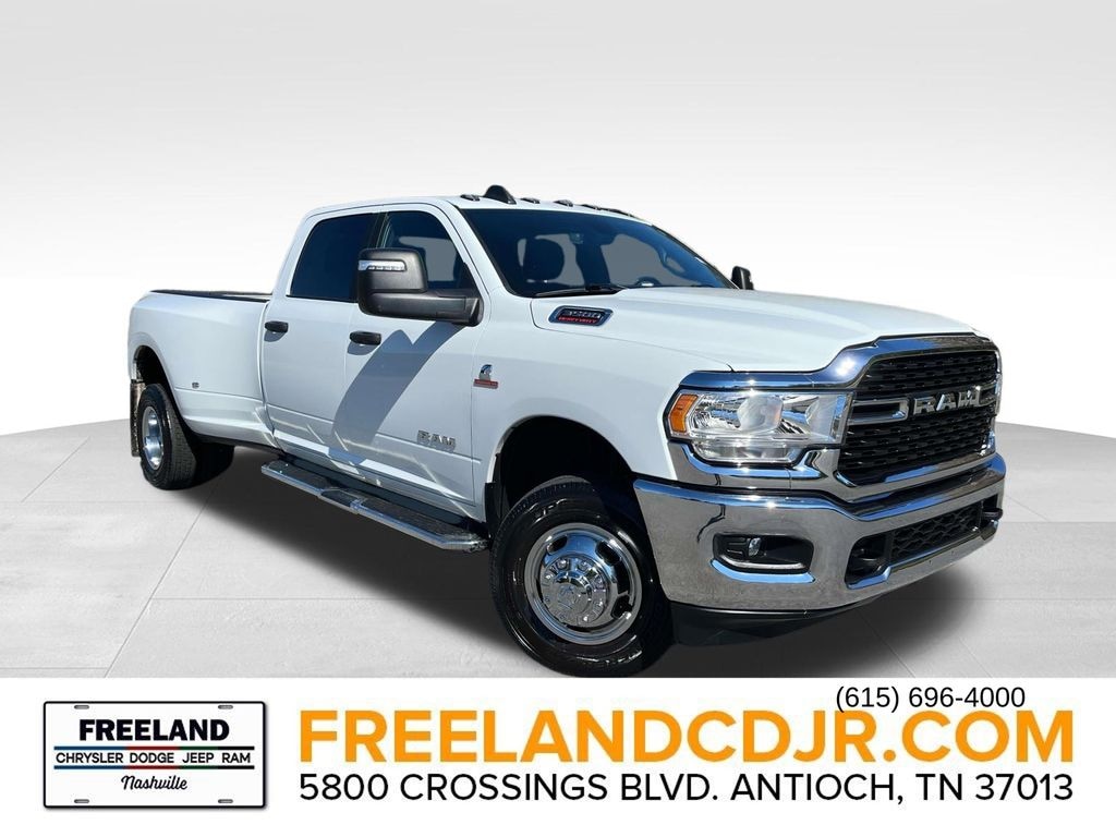 2024 Ram 3500 Big Horn Dully CARFAX One-Owner. Visit us at www.FreelandCDJR.com to save time and buy online., **Bluetooth Handsfree Calling**, **Rear Backup Camera**, **AppleCarplay/Android Auto**, 2nd Row In Floor Storage Bins, Auto Power-Folding Mirrors, Black Exterior Mirrors, Center Hub, Dual Glove Boxes, Exterior Mirrors Courtesy Lamps, Exterior Mirrors w/Heating Element, Exterior Mirrors w/Supplemental Signals, Foam Bottle Insert (Door Trim Panel), Footwell Courtesy Lamp, Forward & Reverse Utility Lights, Front Fog Lamps, Glove Box Lamp, Leather Wrapped Steering Wheel, Level 1 Equipment Group, Locking Lower Glove Box, Mirror Running Lights, Power Adjust Mirrors, Power Heated Fold Telescopic Mirrors, Power Telescoping Mirrors, Power-Adjustable Convex Aux Mirrors, Premium Cloth 40/20/40 Bench Seat, Quick Order Package 2HZ Big Horn, Radio: Uconnect 5 w/8.4" Display, Rear Dome w/On/Off Switch Lamp, Steering Wheel Mounted Audio Controls, Wheels: 18" x 8.0" Polished Aluminum.