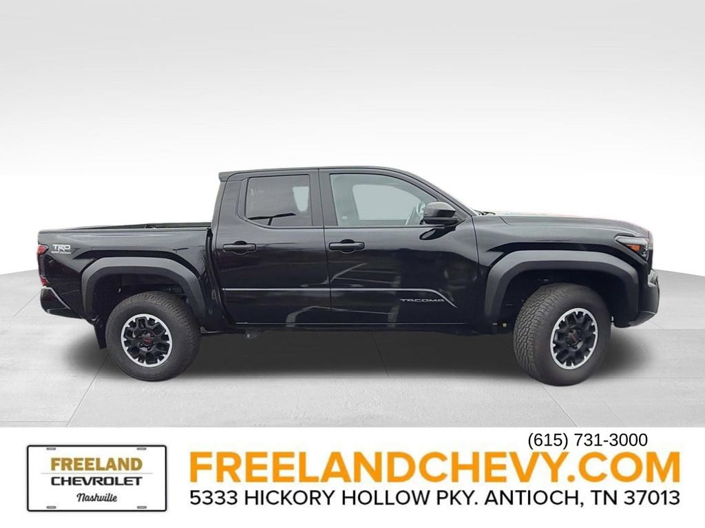 Experience hassle-free car buying at Freeland Chevy. Freeland Chevrolet Superstore Where People Matter! Tacoma TRD Sport, 4D Double Cab, 4WD, Black, Black Cloth, 3.583 Axle Ratio, 4-Wheel Disc Brakes, 6 Speakers, ABS brakes, Air Conditioning, Alloy wheels, AM/FM radio: SiriusXM, Anti-whiplash front head restraints, Apple CarPlay/Android Auto, Auto High-beam Headlights, Auto-dimming Rear-View mirror, Automatic temperature control, Brake assist, Bumpers: body-color, Driver door bin, Driver vanity mirror, Dual front impact airbags, Dual front side impact airbags, Electronic Stability Control, Emergency communication system: Safety Connect (1-year trial), Exterior Parking Camera Rear, Fabric Seat Trim (FE), Four wheel independent suspension, Front anti-roll bar, Front Bucket Seats, Front Center Armrest, Front fog lights, Front reading lights, Fully automatic headlights, Heated door mirrors, Illuminated entry, Knee airbag, Leather Shift Knob, Leather steering wheel, Low tire pressure warning, Occupant sensing airbag, Outside temperature display, Overhead airbag, Overhead console, Panic alarm, Passenger door bin, Passenger vanity mirror, Power door mirrors, Power steering, Power windows, Radio: 8 Toyota Audio Multimedia, Rear step bumper, Rear window defroster, Remote keyless entry, Security system, Speed control, Speed-sensing steering, Split folding rear seat, Steering wheel mounted audio controls, Tachometer, Telescoping steering wheel, Tilt steering wheel, Traction control, Trip computer, Turn signal indicator mirrors, Variably intermittent wiper